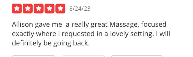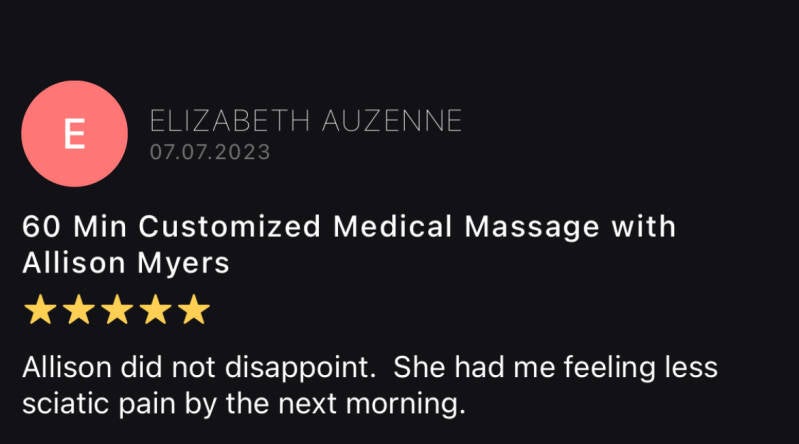 Allison Myers is a professional medical massage therapist of 8 years of experience, based in Rancho Cucamonga, CA. We specialize in providing a wide range of massage therapy services, from sports massage to deep tissue and Swedish massage. Our highly experienced staff is dedicated to giving you the best possible experience so that you can achieve the results you desire. I strive to provide the highest quality services to our clients and ensure that their experience is one to remember. Our mission is to provide the best massage experience for every customer by using our expertise and knowledge.